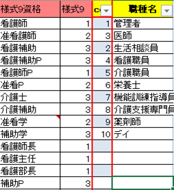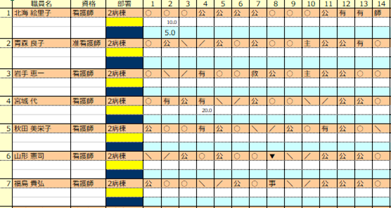 ※普段勤務表で使っている「看護主任」や「介護士」などの名称が使えます