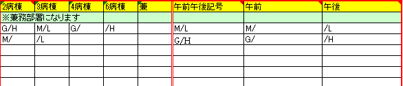 ⑥勤務表を印刷したり様式9や看護日誌に展開するための表示範囲を指定できます